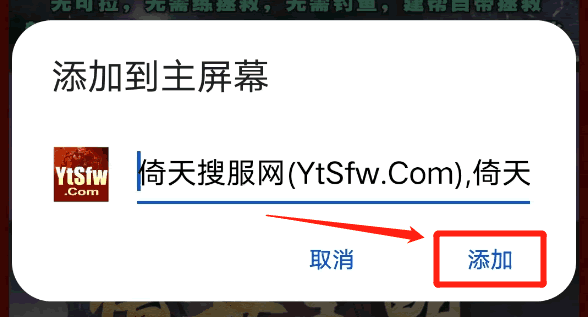3、弹出 添加到主屏幕 ,轻戳 添加 按钮;